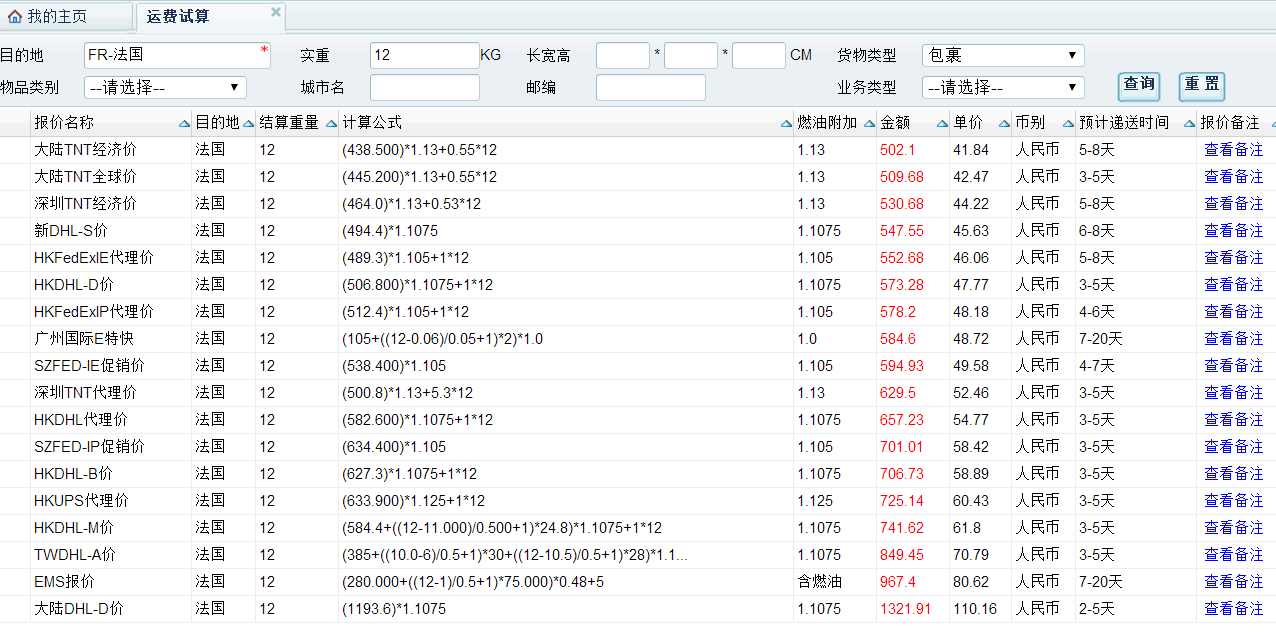 客戶可以聯系閩亞快遞銷售,開通會員賬號,便可以在網站上查詢更多價格,查詢結果如下